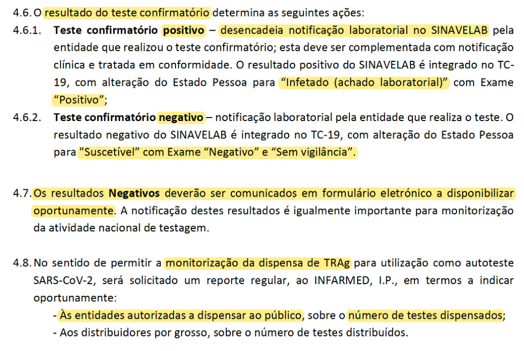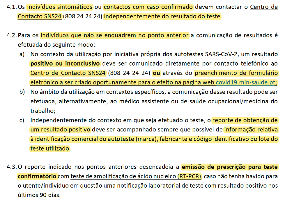 • Portaria nº 56/2021, de 12 de março – Regime excecional no âmbito da COVID-19: Critérios de inclusão, operacionalização da utilização e reporte de resultados dos autotestes. Circular Informativa Conjunta INFARMED/DGS/INSA nº 005/CD/100.20.200, de 19/03/2021