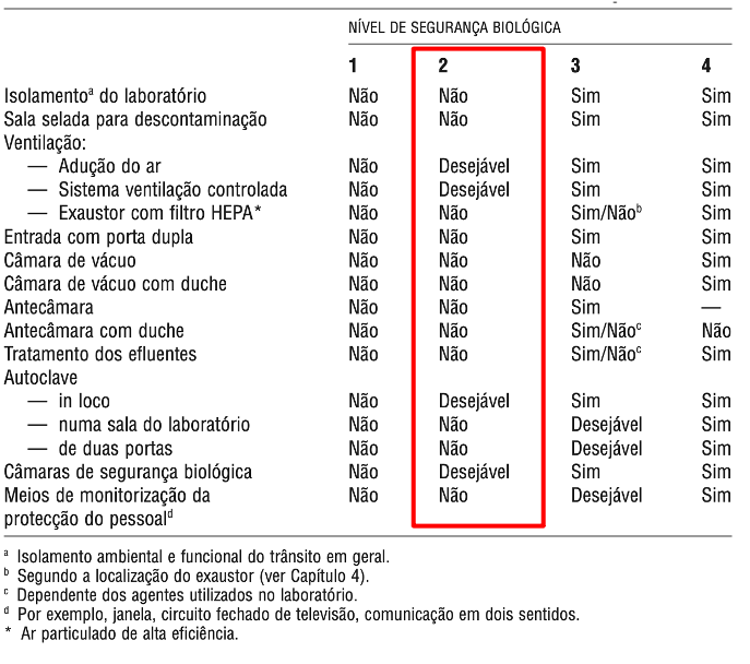 No caso do BSL2, deve existir uma câmara de fluxo laminar, classe 2, para utilizar sempre que: