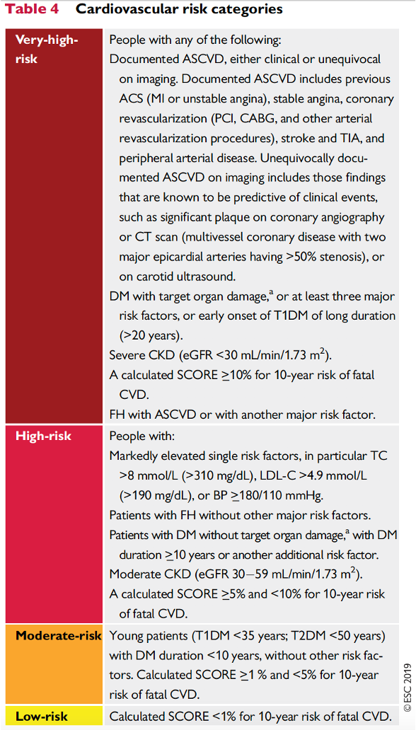 A intensidade das medidas preventivas deve ser personalizada e adequada ao RCV total da pessoa. Por esse motivo foram criadas categorias de risco para servirem como um guia de decisão na prática sobre as intervenções que são necessárias.